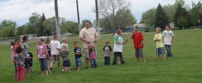 After the program, we sat around and visited with our cousins, served ice cream cones and goodies for desert, and my mom arranged for a "Candy Cannon" for the kids. The Bergevin's (from Moreland) set off their candy cannon 3 times and all the children had bags full of candy before it was over. There were also foot races, a volleyball net, etc. Best part is that the sun was shining so we all got a little tan.